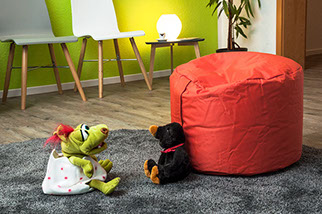 Dann machen wir mit unseren jungen Patienten Spaziergänge, üben die Bewältigung von Alltagssituationen und motivieren zu neuen Erfahrungen. Dabei erhalten wir – nach vorheriger Absprache – auch mal „tierische“ Unterstützung durch einen ausgebildeten Therapiehund.